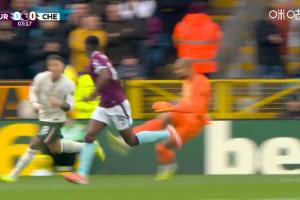 桑切斯开门球时传给查洛巴,查洛巴用手按住,伯恩利球员抗议手球