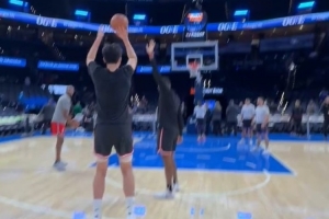 外线手感不错!杨瀚森赛前热身 弧顶三分4次出手全部精准入筐