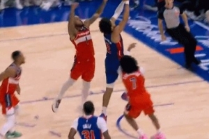 弄啥嘞?!科林斯瞎包夹送对手扣空篮 哈登无奈摊手